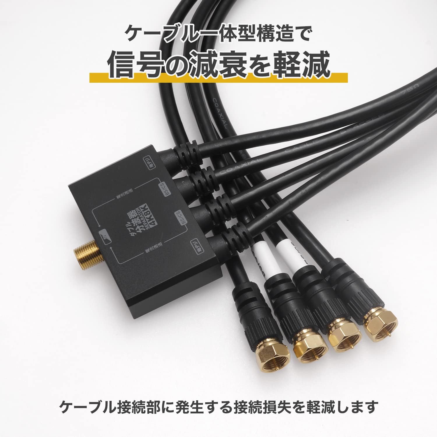 ■ The functions of a wavebasket and a splitter in one. Distributing and distributing signals can be done with this unit, making it possible to connect to your TV and recorder without waste. ■Compatible with new 4K8K satellite broadcast In addition to traditional terrestrial digit, BS, 110 degree CS broadcast, it also supports the latest 4K/8K broadcast. - Integrated cable construction The main unit and the output cable are integrated so you can reduce connection loss compared to separate models. ■ New design makes it easier to use It is about 60% of the size of the previous model for a compact yet sophisticated design. There are also two colors to choose from, so you can choose the one that matches your device or cable. ■BS antenna power supply available Requires an input antenna cable (sold separately).